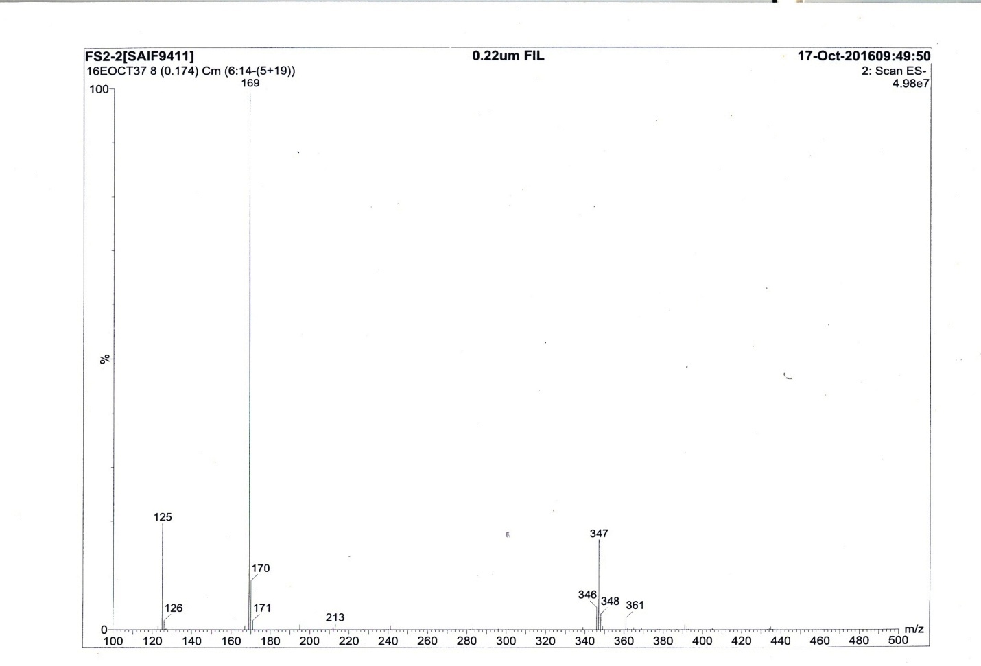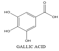 Compound FS-2 Elution of the column with ethyl acetate: methanol (9:1) fraction no. F11-F12 was obtained as a white powder that after recrystallization with methanol formed an amorphous white powder. Yield = 360 mg, M. P = 235-237 °C, Rf =: 0.64 [toluene (4): ethyl acetate (3): methanol (3)]. IR: (KBr, νmax, cm-1): 3369.46 (O-H), 3019.82, 2400.23 (OH carboxylic acids) 1603.66 (C=C alkene), 1215.63 (C-O alcohol), 1023.66, 929.01, 756.94, 669.33 (C-H out of plane bending of aromatic hydrocarbon). Mass m/z: 169 [M+] (C7H6O5), 1HNMR δ 7.128 (1H, H-2, H-6, s) and 5.3 (1H, H-3, H-4, H-5, s). Conclusion: On the basis of spectral evidence of compound FS-2 was established as Gallic acid.