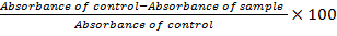 Free radical scavenging activity assay was performed according to previously published procedures [23-25]. DPPH (HI Media) solution was prepared by dissolving 25 mg in 1L 80% methanol. Then 1 ml of DPPH solution was added to each test tube in two series followed by the addition of 1µg/ml, 2µg/ml, 3µg/ml up to 10µg/ml of test sample to one series and 1µg/ml, 2µg/ml, 3µg/ml up to 10µg/ml of ascorbic acid to another series. Mixtures were shaken well and kept in the dark at 37 °C for 60 min. 100% methanol was taken as blank, DPPH as a negative control and ascorbic acid as a positive control and the absorbance was measured at 517 nm. All the experiments were performed in triplicate and the percentage of inhibition was calculated by the following equation.