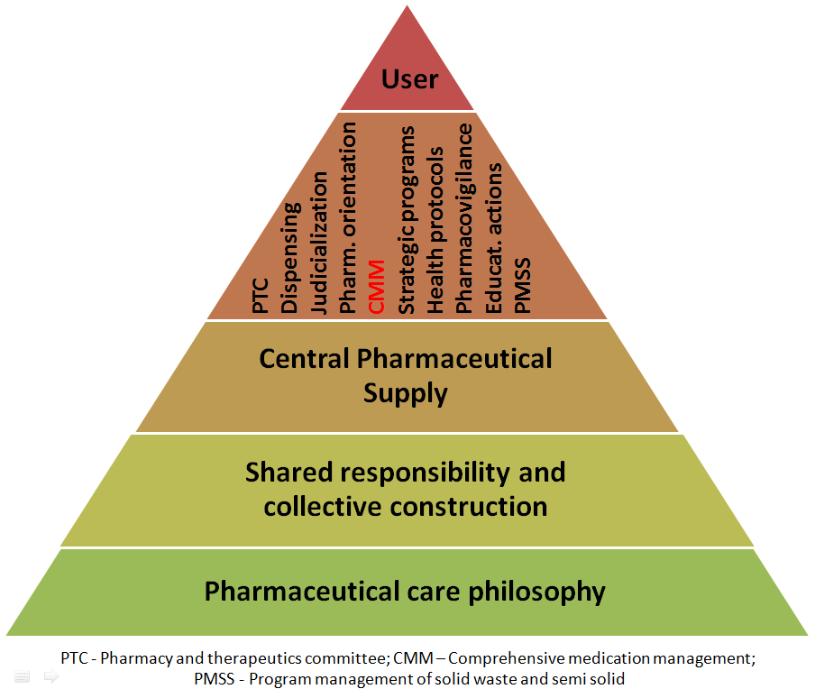 Pharmaceutical Care Practice, proposed by Hepler and Strand (1990), is described as a response to social demands for a professional who takes responsibility for the drug use process in patients’ daily lives. It is a patient care professional practice defined as the responsible provision of pharmacological treatments, seeking concrete results that improve patients’ quality of life [3]. In this context, Ramalho-de-Oliveira proposes that the professional practice of Pharmaceutical Care should not be understood only as an activity, but as a new way of thinking, being and acting for pharmacists’ practitioners [4]. The term Comprehensive Medication Management (CMM), which is the operationalization of pharmaceutical care practice into a health service, is defined as the care standard that ensures each patient’s medications (whether they are prescription, nonprescription, alternative, traditional, vitamins, or nutritional supplements) are individually assessed to determine that each medication is appropriate for the patient, effective for the medical condition, safe given the comorbidities and other medications being taken, and able to be taken by the patient as intended [5].