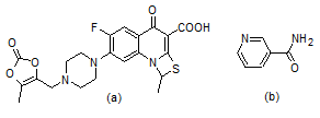 Crystals of prulifloxacin exhibits Raman bands at 1741 and 1627 cm-1 (carbonyl groups). When a salt is formed with amine bases the carbonyl bands are shifted to lower frequencies by 30 to 40 cm-1. In PF-NCT cocrystals frequencies of carbonyl groups are shifted, but the magnitude of shift is relatively small due to hydrogen bonding.