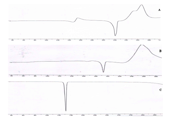 Fig. 5: DSC curves of PF (A), PF-NCT (B) and NCT (C)
