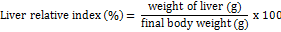 Liver obtained from the rats were washed with NaCl 0.9%. The observation was done toward the intensity of colour, texture of liver surface as well as organ weight in order to calculate the liver relative index.