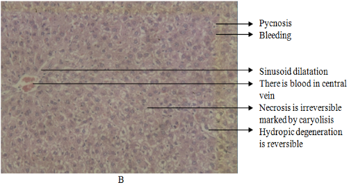 The liver tissue was treated with 10%(v/v) formalin buffer and then embedded in paraffin. Slicing was done using a microtome and stained with haematoxylin and eosin and observed by using a microscope.