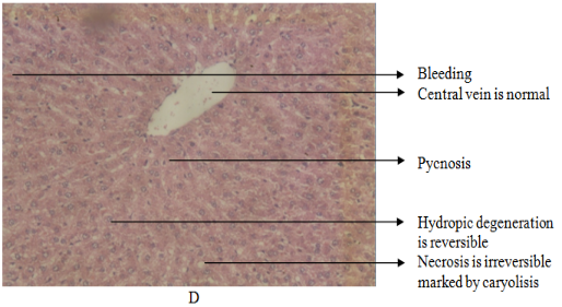 Histopathology result showed that there is blood in a central vein in negative control and group