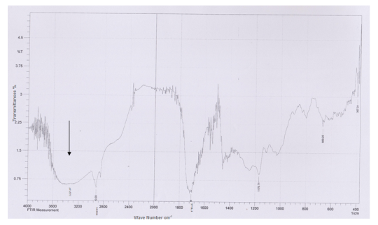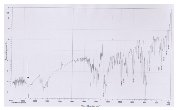 About 2-3 mg sample were mixed with dried IR grade potassium bromide powder and the spectra were in between the wave number range of 4000-400 cm-1[15].
