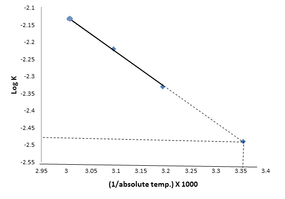 Fig. 8: Arrhenius plot of desloratadine in F9 for estimation of degradation constant (K25oC).