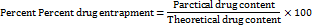 The entrapment efficiency was carried out as a measure of calculating the amount of the drug that is entrapped in the microparticles and the drug, which is adsorbed on the surface of the polymer. This study carries vital importance in surface studies since this is indicative of the measure of drug that goes in forming the microparticles, present in an adsorbed state on the surface of the polymer or as free drug and as a fraction which is found entrapped within the polymeric matrix [10, 11]. Percent drug entrapment was calculated using formula given below,