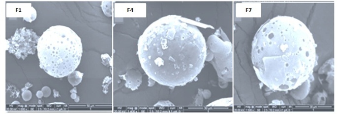 Fig. 5a: SEM photomicrographs of formulation F1, F2, F4, F5, F6 and F7