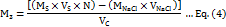 In the flask of an indicator solution, exactly 5.0 ml of standard 0.05MHg(NO3)2 was transferred. Then a known amount of (4.0 ml or 6.0 ml of 0.05M NaCl) was added as a standard chloride and the solution was further titrated against coconut water till faint red color end point. The burette reading/volume (VC) of coconut water was used for calculation of M3 as follow: