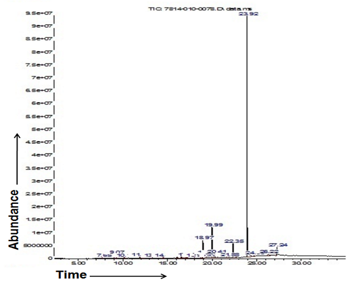 Fig. 1: Gas chromatography–mass spectroscopy chromatogram of rue plant