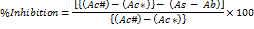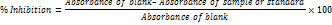 Where “Ac#” represents absorbance of pure control having 100% enzyme activity (DMSO and enzyme), “Ac*” is used for absorbance of blank for pure control having 0% enzyme activity (DMSO and buffer), “As” represents absorbance of sample or standard (sample/standard and enzyme) and “Ab” is used for background absorbance due to sample or standard (sample/standard and buffer).
