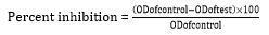 Minimum inhibitory concentration of the extracts was determined by the NCCLS broth microdilution method [20]. It was performed in 96-well microtiter plates. Standardized suspensions of the test organisms (Klebsiella pneumonia, Pseudomonas aeruginosa, Streptococcus mutans, Escherichia coli, Staphylococcus aureus, Candida albicans, and Aspergillusniger) were inoculated into 96-well microtitre plate. A growth control and a sterile control were also kept. Samples were dissolved in 0.1 % DMSO and increasing concentrations were applied in wells (5, 10, 15, 20, 25 and 30 µg/ml) and incubated at 37 °C for 24 h. Growth was examined by visual inspection and measured the optical density (OD) at 630 nm using a spectrophotometer. The growth inhibition for the test wells at each sample dilution was determined by the formula: