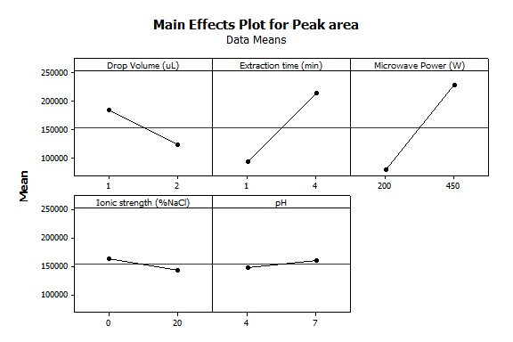 Fig. 3: Main effect of peak area for chlorpyrifos analysis, using MAE-HS-SDME