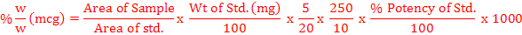 The amount of Beclometasone dipropionate was calculated and in % by using following formula.