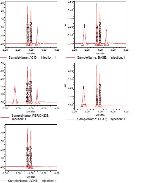 Based on the results of the stress studies, the degradation behavior of paroxetine and clonazepam is as follows.