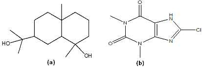 Fig. 2: Chemical structures of: (a) proximadiol (prox) and (b) 8-chlorotheophylline