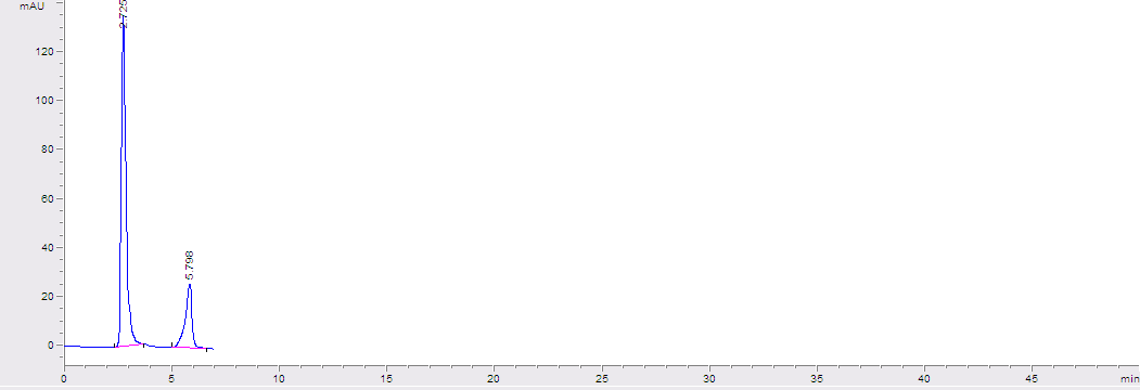 Fig. 3: A typical LC chromatogram of prox (tR 2.73 min) and 8-chlorotheophylline (tR 5.79 min)