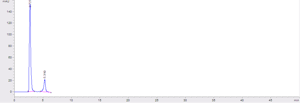 Fig. 4: A typical LC chromatogram of sample solution of prox (tR 2.73 min) and 8-chlorotheophylline (tR 5.31 min)