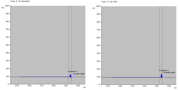 Fig. 1: HPTLC densitogram of standard ursolic acid and in root extract