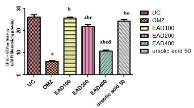 Effect of EAD and ursolic acid on H+K+-ATPase enzymatic activity