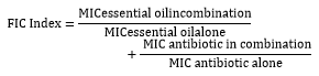 Table 4: Synergistic interaction between Mentha pulegium essential oil and antibiotics against selected bacteria, FICa Index of different combinations of antibiotics and MPb essential oil