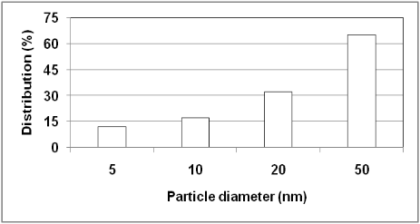 Fig. 5: A particle size distribution histogram of synthesized silver nanoparticles determined from HR-TEM images of S. fusiformis
