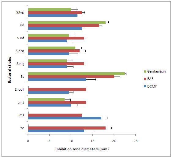 In vitro antibacterial activity of the bioactive fractions (DCMF and EAF) from Laggera aurita L. (Astereceae)