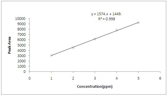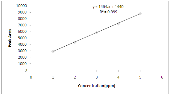 The system suitability test was performed by five replicate analyses of working standard solution. Results of %RSD, retention time, theoretical plates and tailing factor (peak symmetry) are presented in Table 1.