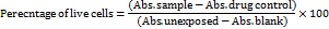 Absorbance was measured at 565 nm by using a microplate reader (AMP Platos R-496). The non-cellular background was subtracted from the respective samples and percent viability was measured relative to the NTC samples. Percentage various viability curves were forthwith generated. The experiment was performed with triplicates for each sample. The cytotoxicity was calculated as percent viability relative to the unexposed samples present on each plate by using the following formula: