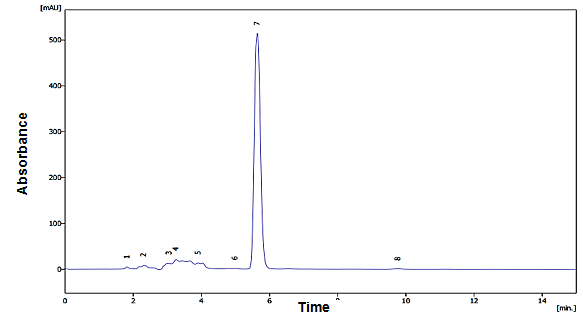 Fig. 2: HPLC chromatograms of exemestane (Rt = 5.7 min)