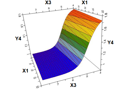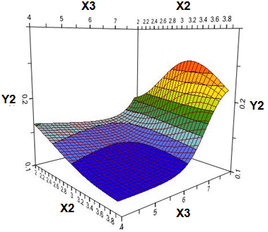It is observed that PDI values (Y2) decrease with decreasing total lipid concentration (X3) from high to middle values (fig. 5). Similar results were also reported by Araujo J [17]. Nanoparticles tend to accumulate and increase aggregation at high total lipid concentration due to the van der Waal forces of attraction and may lead to an increase in PDI values.