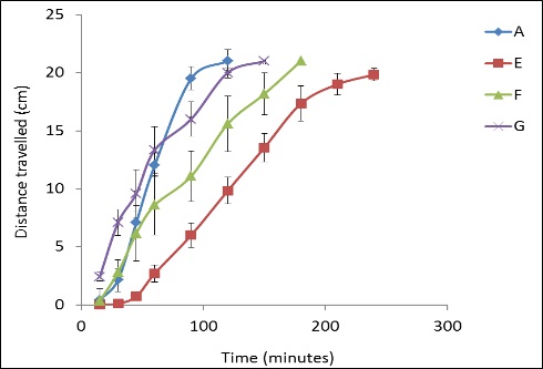 In order to examine the mucoadhesive potential of the HPMC microparticles, an artificial nasal mucosa was prepared using a concentration of 1% agar and 2% mucin w/v according to methods described elsewhere[33,34]. Separate agar and mucin solutions were prepared, following which the agar solution was left to cool down to 50°C before adding the mucin solution with stirring. The mixture was then rapidly poured into plates of 25×25cm and left for 1 hour to set. Following this, the plates were wrapped with cling film to prevent evaporation of water from the media, and stored in the fridge at 4°C overnight to standardize the media to be used for dynamic adhesion measurements the following day. 30g of HPMC powder or microparticles were placed at the top of the plates. Then, a force of 0.05 N was applied to each sample for 60 seconds. All plates were re-wrapped with cling film to prevent any change in the humidity or drying out of the adhesion medium environment for the duration of the experiment. The plates were tilted to an angle of 80° and the samples allowed sliding down the plate, representing the direction of movement within the nasal cavity[33,34]. The distance travelled by the samples with time was measured and used as an indication of extent of bioadhesion. The inverse of the slope of the resultant distance versus time curve was used as an indicative value of the extent of bioadhesion of all formulations in [16].