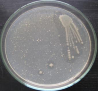 Fig. 1: Growth of chitinolytic bacteria on colloidal chitin agar (CCA) medium at 28 °C for 3 days.