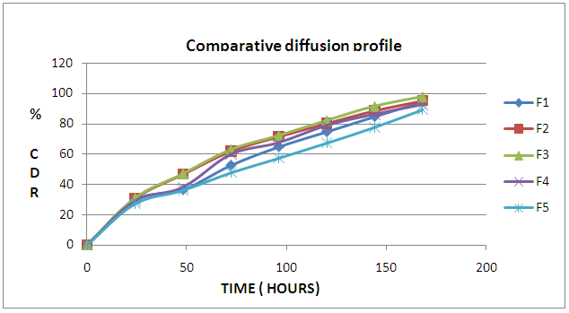 Fig. 4: It shows comparative diffusion profile of formulations F1-F5