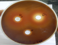 A drop of the culture was put on the plate and smeared over the plate surface with a swab or L- shaped rod. Two wells were made in one plate and 100 µl of formulation without drug (Placebo) was added in 1 well and 100 µl of formulation with drug was added into another well. In second plate one well was made and 100 µl of drug solution was added to it. Both the plates were incubated for 5 days at 370C in bacteriological incubator and the zones were measured at 24, 48, 72, 96 and 120 hrs. In case of P.gingivalis the plates were incubated in anaerobic jars.