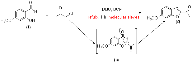 Scheme 1: Synthesis of 1-(6-methoxybenzofuran-2-yl) ethanone (2)