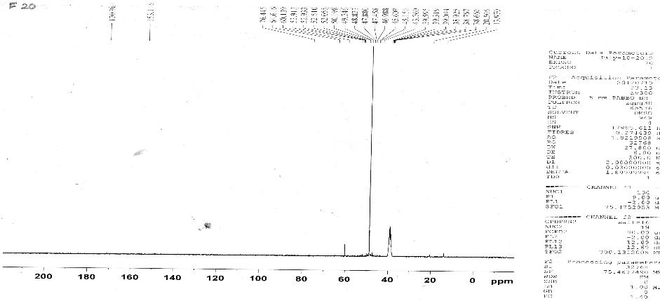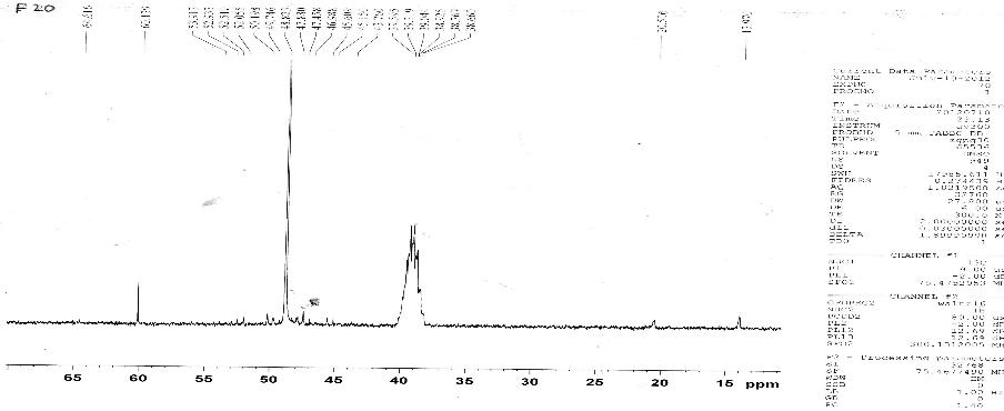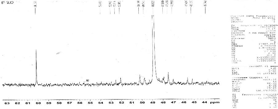 Fig. 6: 13C- NMR spectra of the isolated lead compound (δ˂63 ppm)