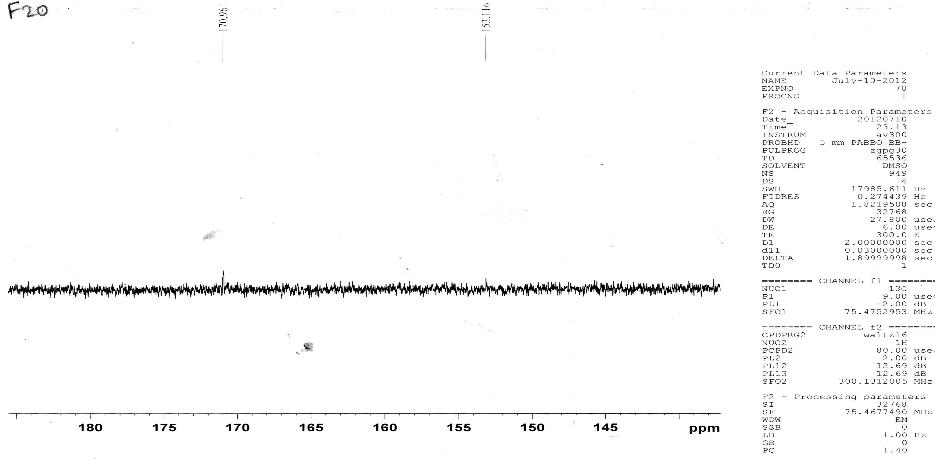 Fig. 4: 13C- NMR spectra of the isolated lead compound (δ˂180 ppm)