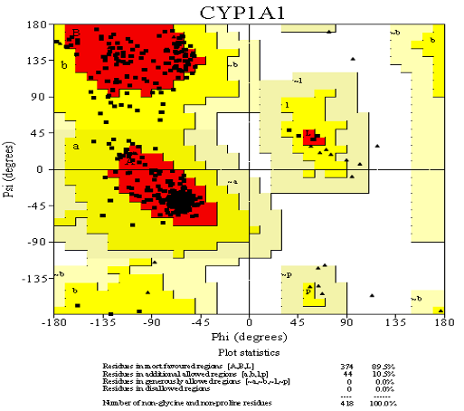 Fig. 1: Modeled CYP1A structure validated using Ramachandran Plot