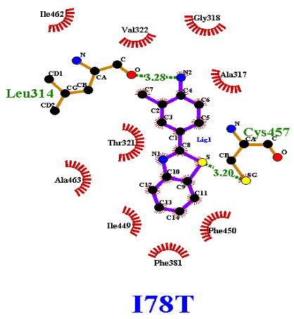 | Fig. 4: I78T, I462F, R135W, F470V, R279G, R279W Mutant models interaction with DF203 |
