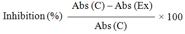 Where Abs (C) is the absorbance of the control (without extract or standard) and Abs (Ex) is the absorbance in the seaweed extracts or standard.