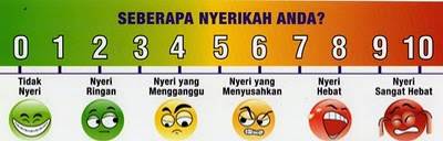 Pain intensity was measured by a combination of Wong Backer Face Rating Scale (WBFPRS) and numeric rating scale (NRS) tools (fig. 1). Patients were asked to circle one number between 0 and 10 that was the most appropriate to describe the intensity of their pain. Pain intensity was assessed at baseline and every week until the 4th w. The area under the curve (AUC) of pain intensity on each subject was calculated up to 4 w of observation using trapezoidal rule.