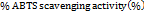 The ABTS assay was performed according to the protocol of Arnao et al., with slight modification [17]. Different quantities (10, 20, 40, 80 and 100 μg) of the phyto-extracts were tested. Absorbance was taken at 734 nm. In the ABTS assay, IC50 values for the percentage of ABTS radical scavenging were calculated.