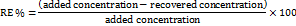 | Added (µg/ml) | Recovered (µg/ml) | CV (%) | RE (%) | Added (µg/ml) | Recovered (µg/ml) | CV (%) | RE (%) |