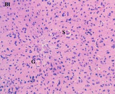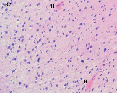 Histopathological evaluation of the cerebral cortex of rat brains was performed. The brains were excised and immediately fixed in 10% buffered formalin. The cerebral cortex was sectioned from the brain, which was jpgded in paraffin after being dehydrated in alcohol.