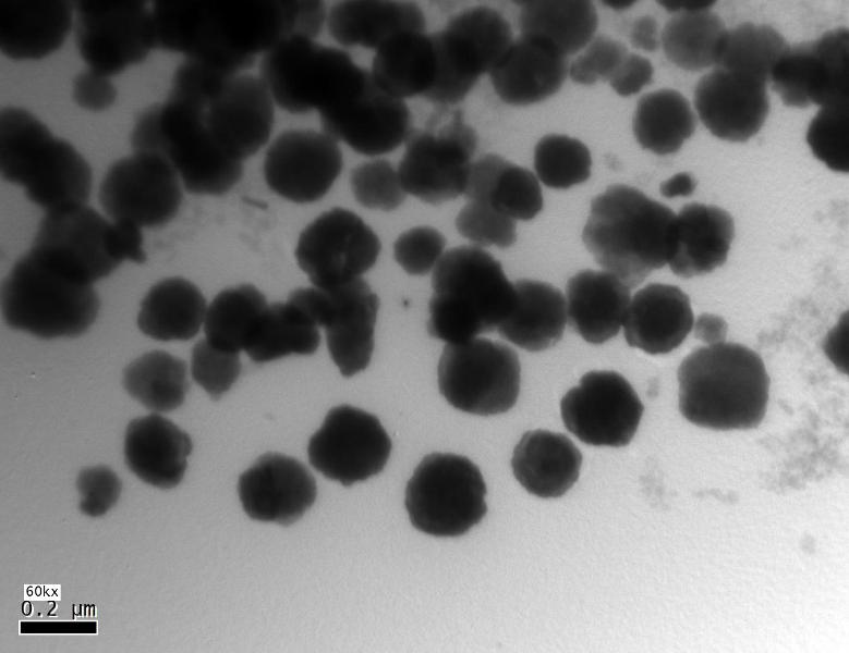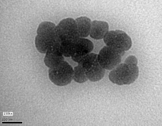 Transmission electron microscopy (TEM) was utilized for elucidating morphology of the prepared nanoemulsions. Photographs of TEM (Figs. 1-3) demonstrate clearly the spherical outlines of nanoemulsion droplets.
