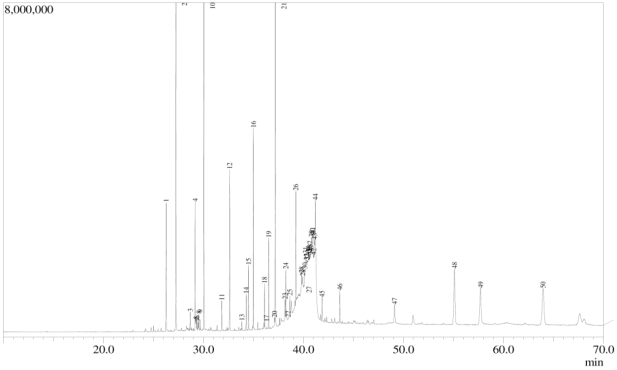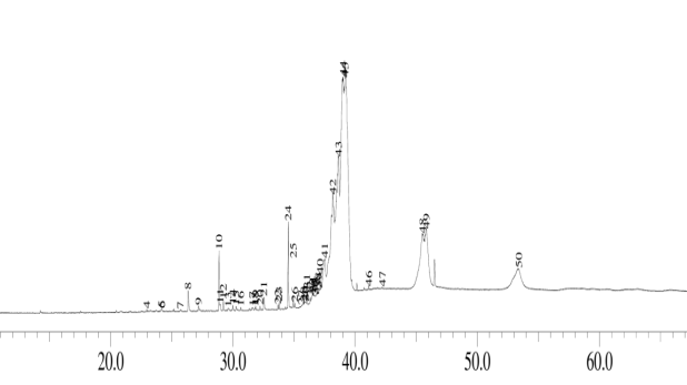 | 10 | 37.11 | Tetratetracontane | C44H90 | 618 | 0.20 |