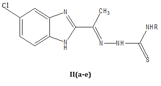 Hitesh et. al synthesized [30] a series of thiosemicarbazones of 1-(5-chloro-1H-benzimidazol-2-yl)ethanone (IIa-e) and studied their in vitro antitumor activity against 60 human cell lines derived from nine clinically isolated cancer types (e. g. Leukemia, lung, colon, CNS, melanoma, ovarian, renal, prostate and breast) according to a standard protocol established at the National Cancer Institute, Bethesda, MD, USA.