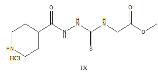 The mode of inhibitory action of 4-ethoxycarbonylmethyl-1-(piperidin-4-ylcarbonyl)-thiosemicarbazideHydrochloride (IX) was examined by performing docking simulations with ATP-binding domain of hTopoIIα(PDB: 1ZXM) and DNA binding site of hTopoIIβ (PDB id: 3QX3) using the FlexX program, which has been shown to be reliable enough to carry out binding mode analysis of ligands in ATP binding pocket of hTopoIIα [55]. Compound (IX) was docked into the DNA and ATP binding sites, respectively, wherein in both the cases, crystallographic water molecules were treated rotatable and displaceable. Their contribution to binding was found negligible in all cases and its free energies of binding obtained from the Hyde scoring function [56-57], was 9 kJ/mol in the DNA active site, while −20 kJ/mol in the ATP binding site Results clearly indicated that M has greater affinity toward the ATP binding site than to the DNA binding pocket of hTopoIIα and is an even more effective inhibitor than AMPPNP. (IX)formed 11 hydrogen bonding interactions with water molecules, Gly164, Asn163, Arg162, Glu87, Gly166, Tyr165 and hydrophobic interactions with Gly160, Gly161, Asn91.