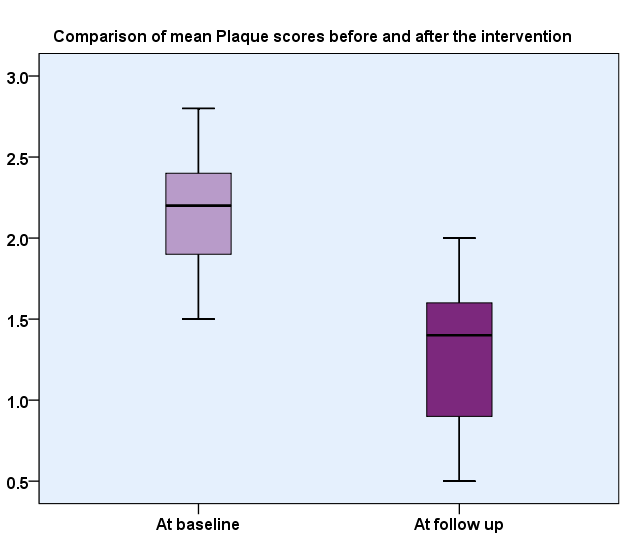 Fig. 1: Comparison of mean plaque scores before and after the intervention